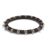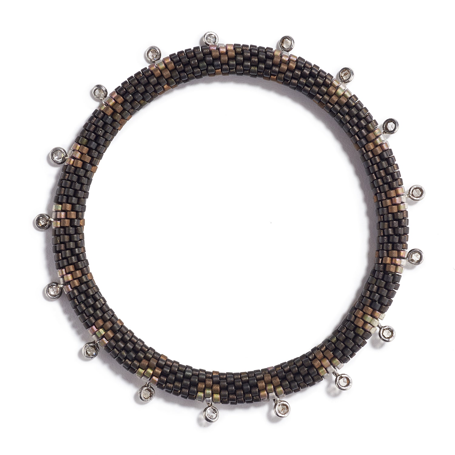 Cylindrical glass beads, silver and diamonds