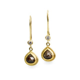 22K & 18K yellow gold, 1.5ctw rose-cut black/brown diamond drops, 3mm faceted round diamonds