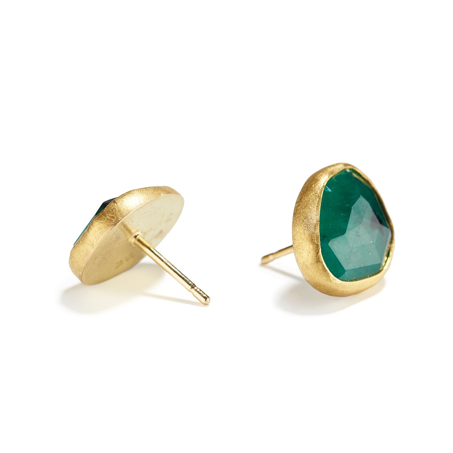 The rich emerald proves how color makes a statement and sets a mood. These earrings feature rose cut emeralds set in the warmth of 22K yellow gold.