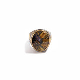 24K & 22K yellow gold, oxidized sterling silver, bezel-set rutilated quartz