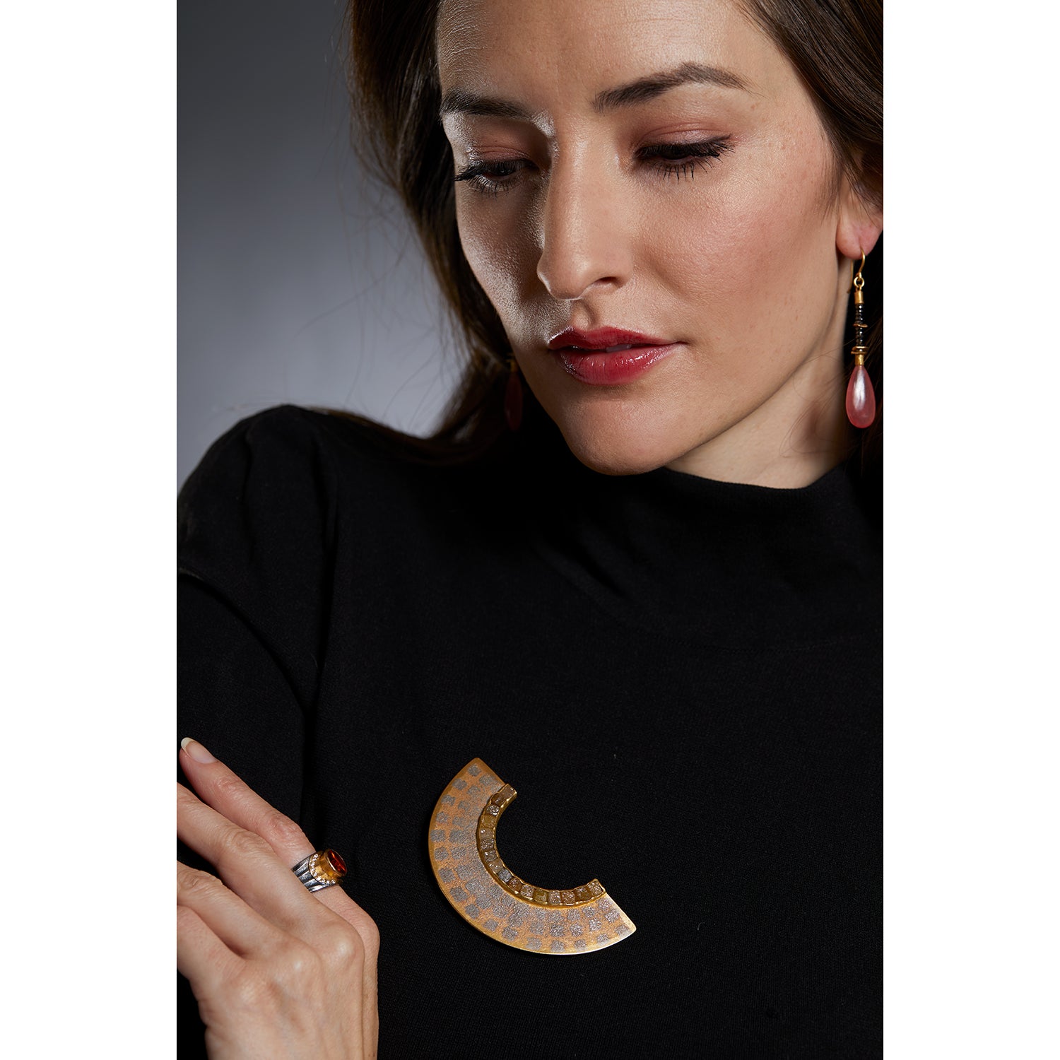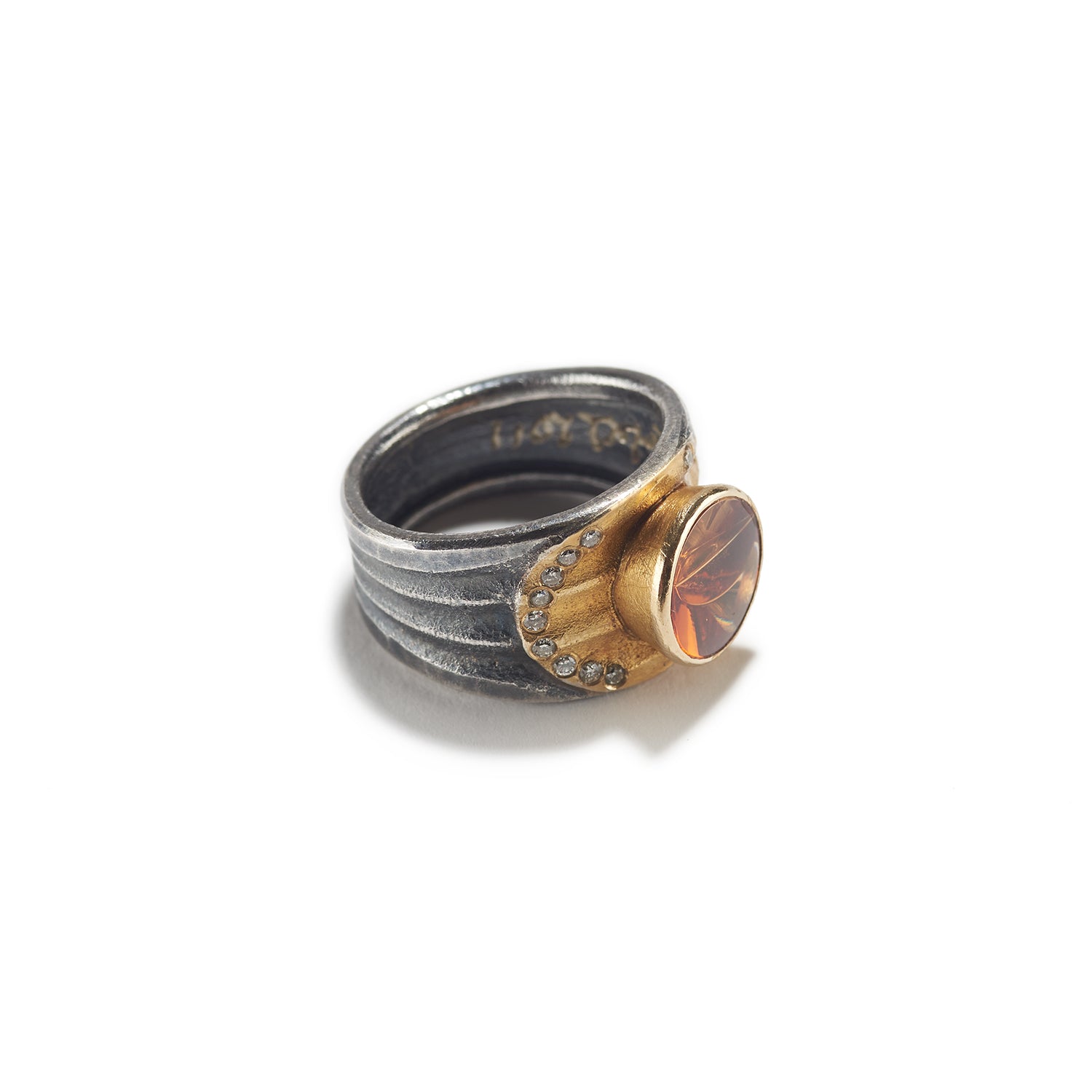 Spessartine garnet, 22K yellow gold, oxidized sterling silver, diamonds