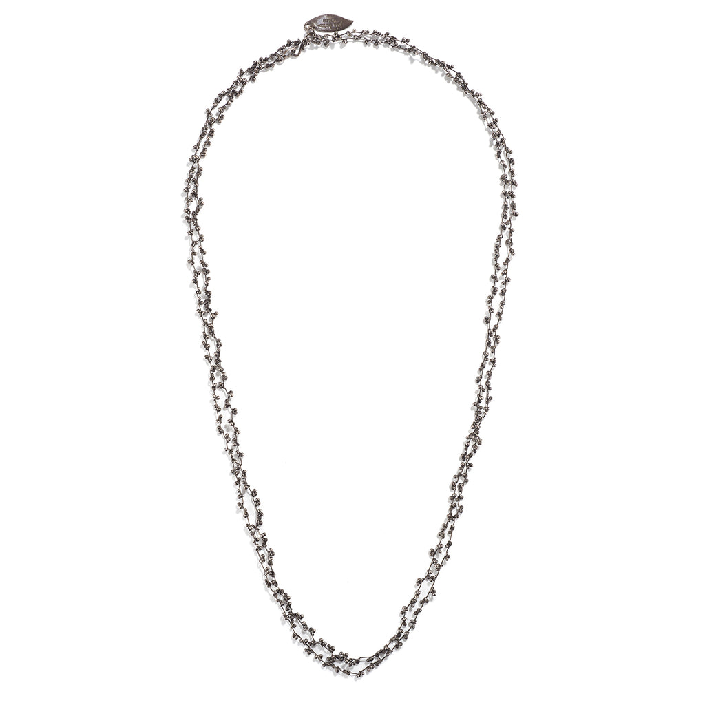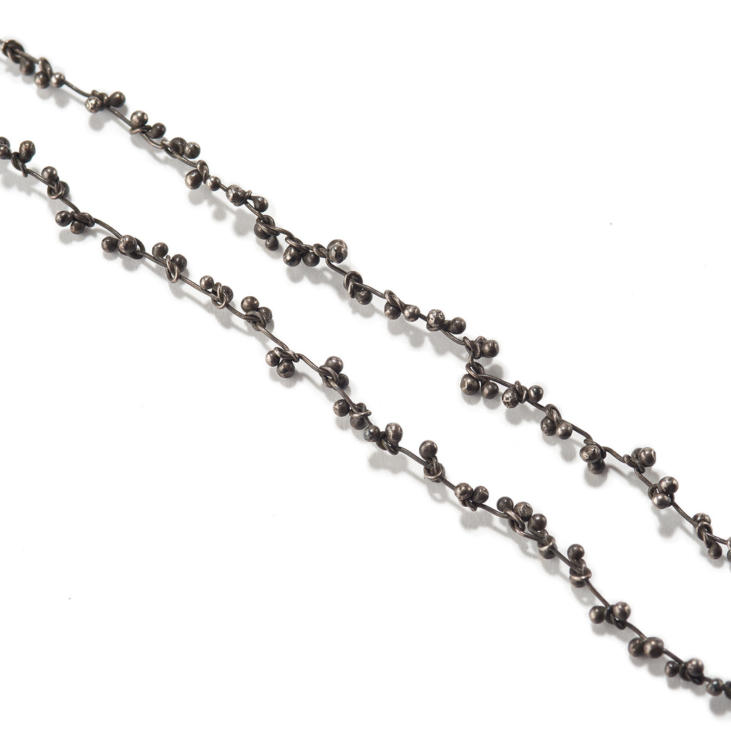 Tiny 'seeds' of oxidized sterling silver compose this necklace from maker John Iversen. Wear it doubled (or even tripled around the neck), or wrapped multiple times around the wrist.