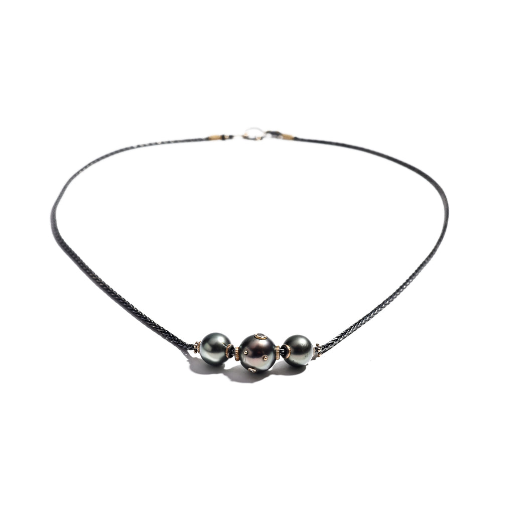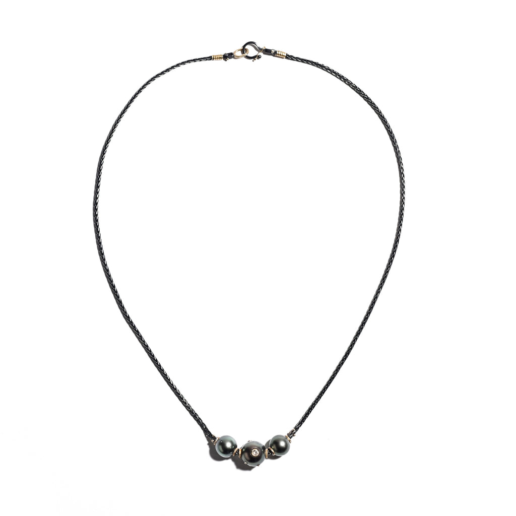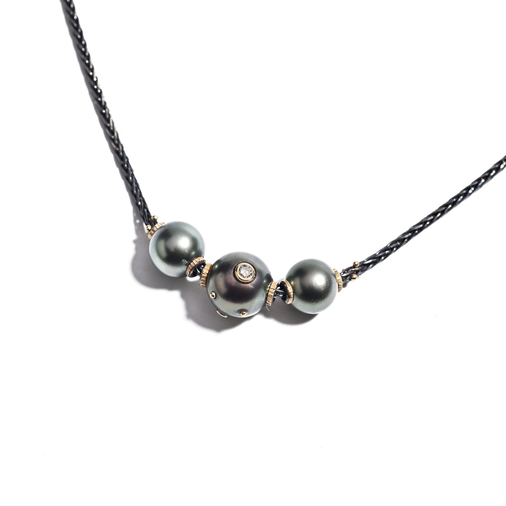 18K yellow gold, sterling silver, Tahitian black pearl, diamond