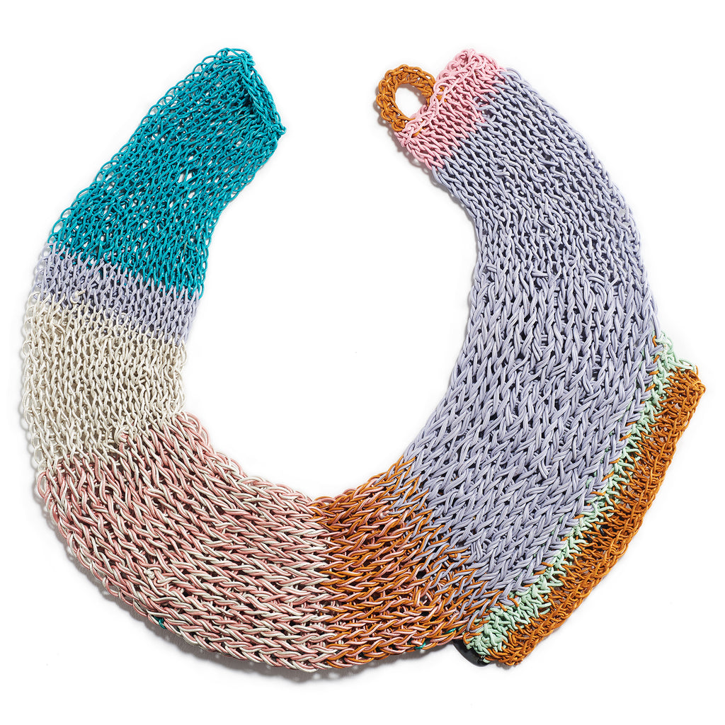 Captivated by the tactile, utilitarian qualities of the basket and other historically significant manifestations from the fiber arts, artist, Brooke Marks-Swanson seeks to interpret that purpose through her contemporary works of adornment.