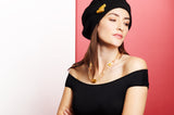 The 3 gold units add play to the natural golden quartz with the optical illusions in each of the crystal facets.