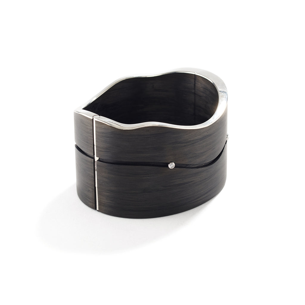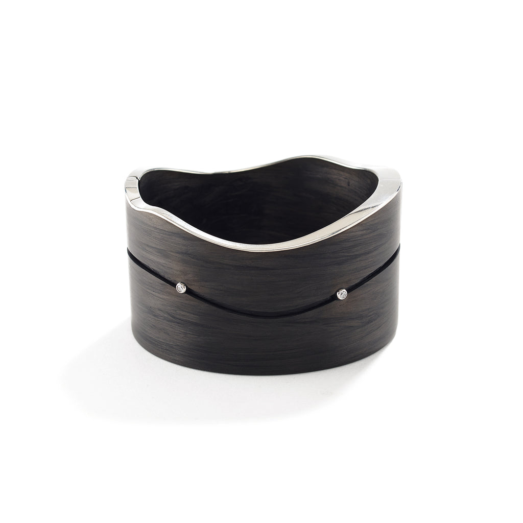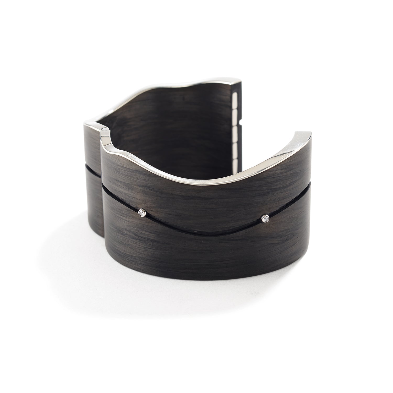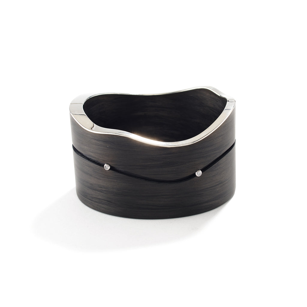 Carbon fiber, sterling silver, white gold, and 4 diamonds