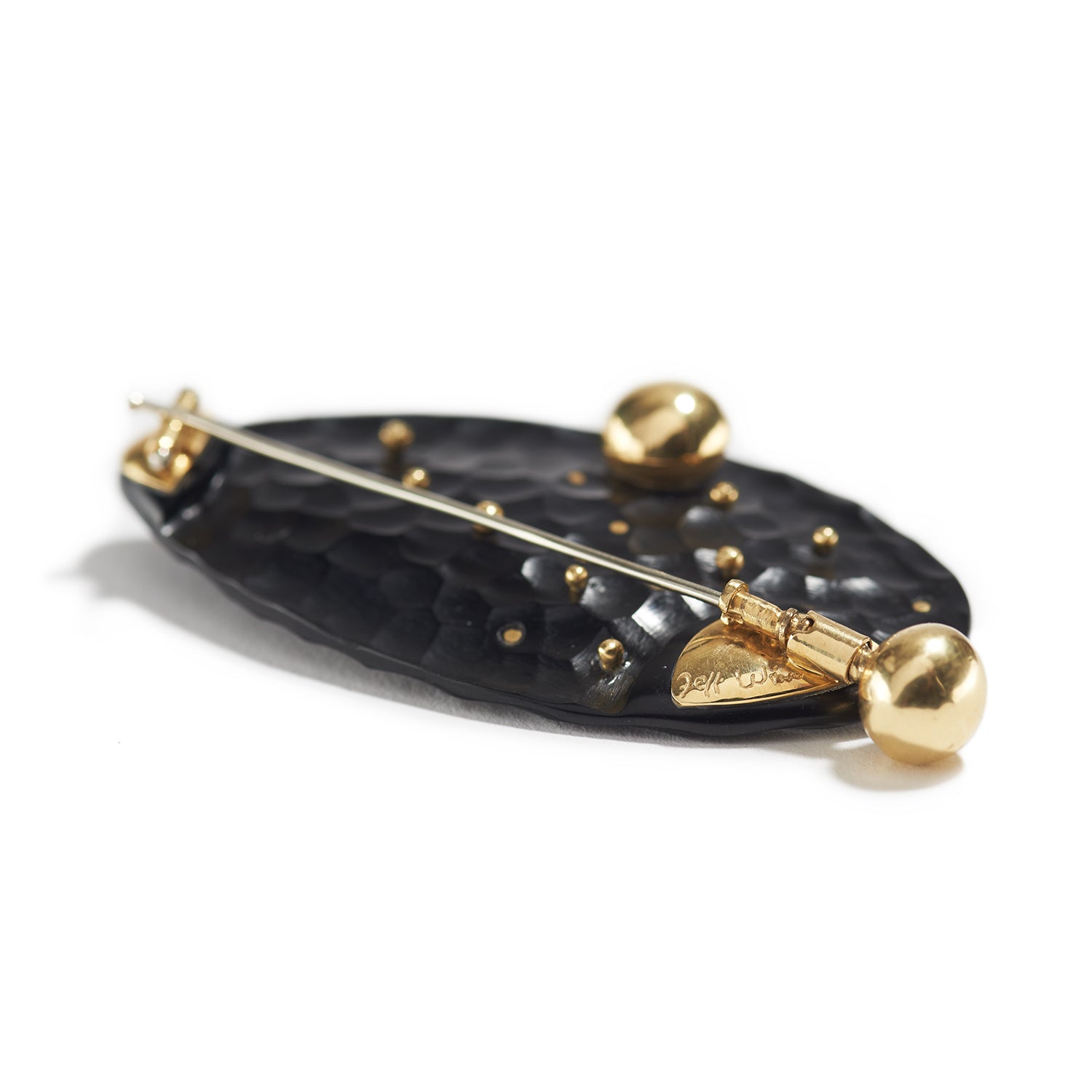 • Threaded 18K signature clasp for the pin stem